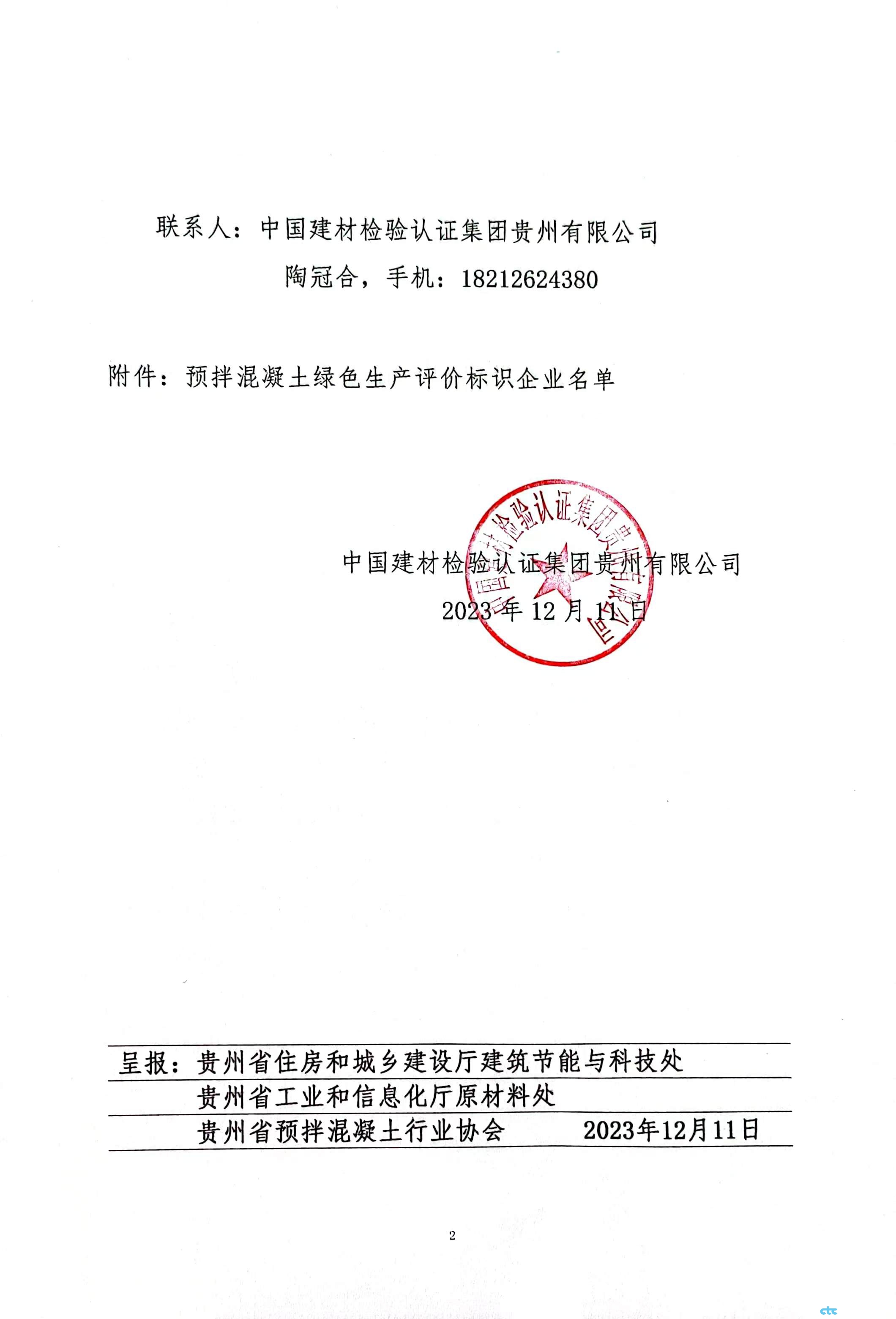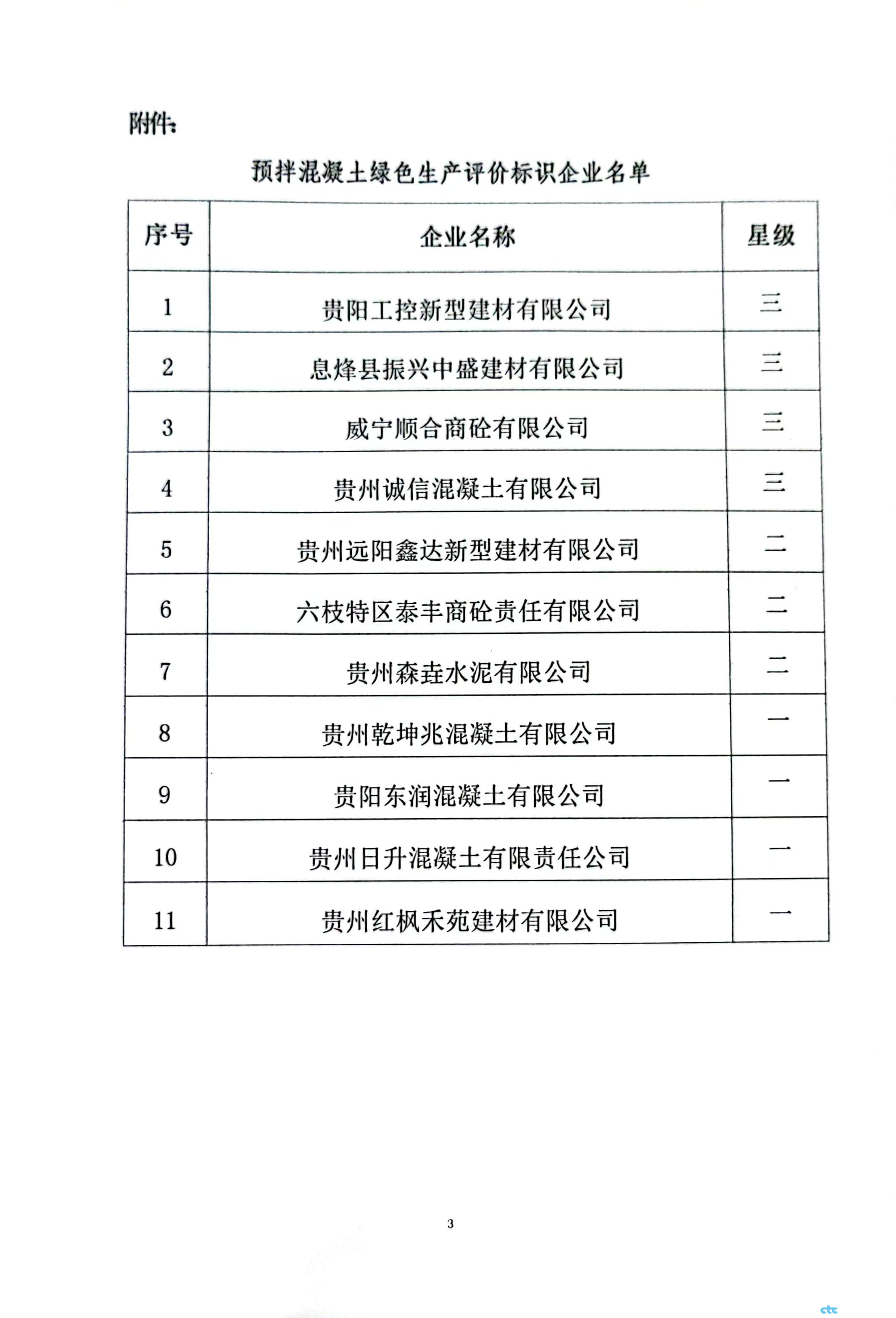 2023年貴州省第七批通過預(yù)拌混凝土綠色生產(chǎn)標(biāo)識評價企業(yè)公示