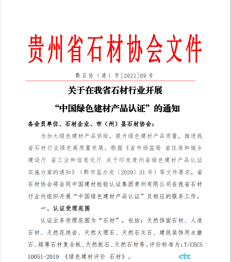 我公司與貴州省石材協(xié)會聯(lián)合開展綠色建材產(chǎn)品認(rèn)證相關(guān)工作