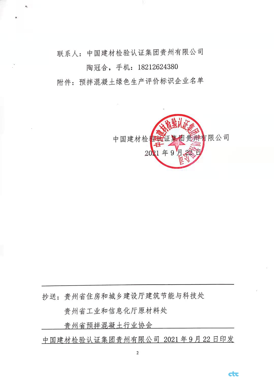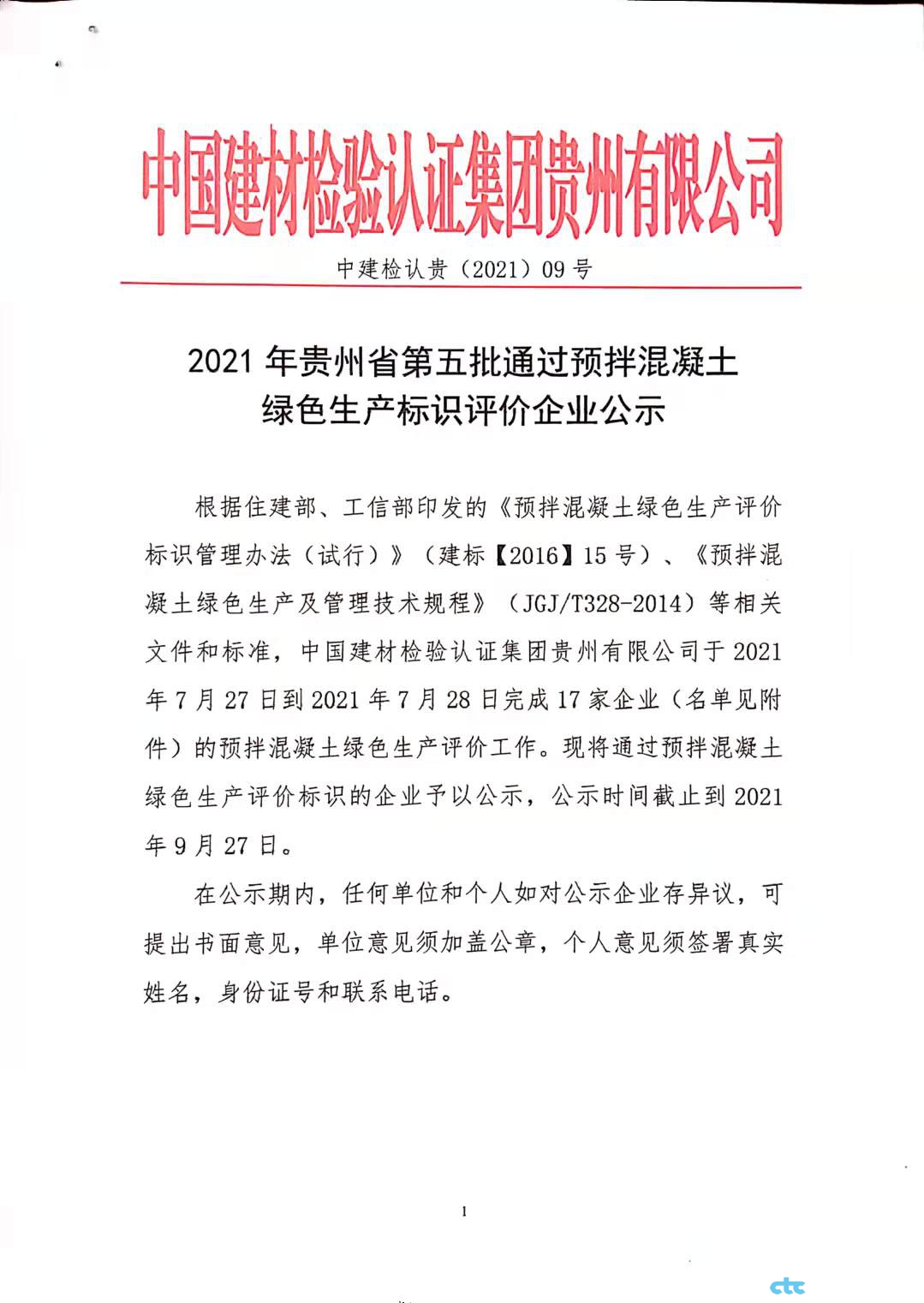 2021年貴州省第五批通過預(yù)拌混凝土綠色生產(chǎn)標(biāo)識評價企業(yè)公示