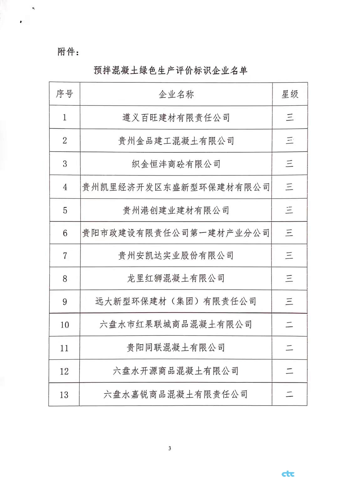 2022年貴州省第六批通過預(yù)拌混凝土綠色生產(chǎn)標(biāo)識評價企業(yè)公示